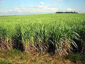 Das Foto darunter zeigt ein Zuckerrohrfeld.