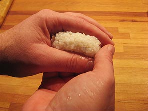 wir Nigiri Sushi geformt. Das sind Hand geformte längliche